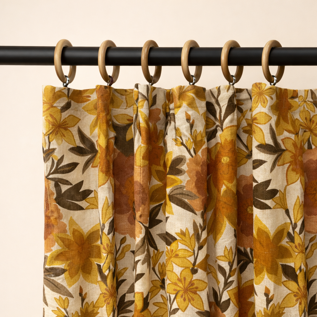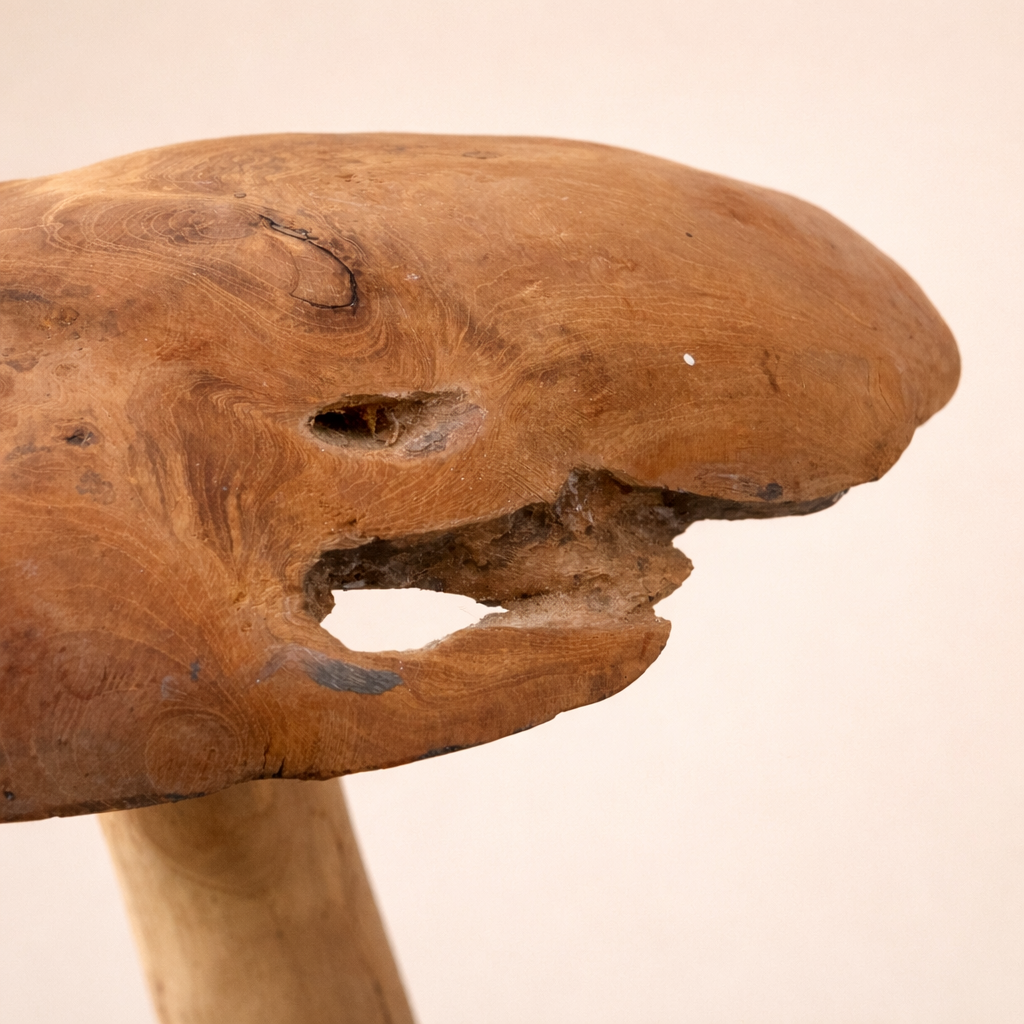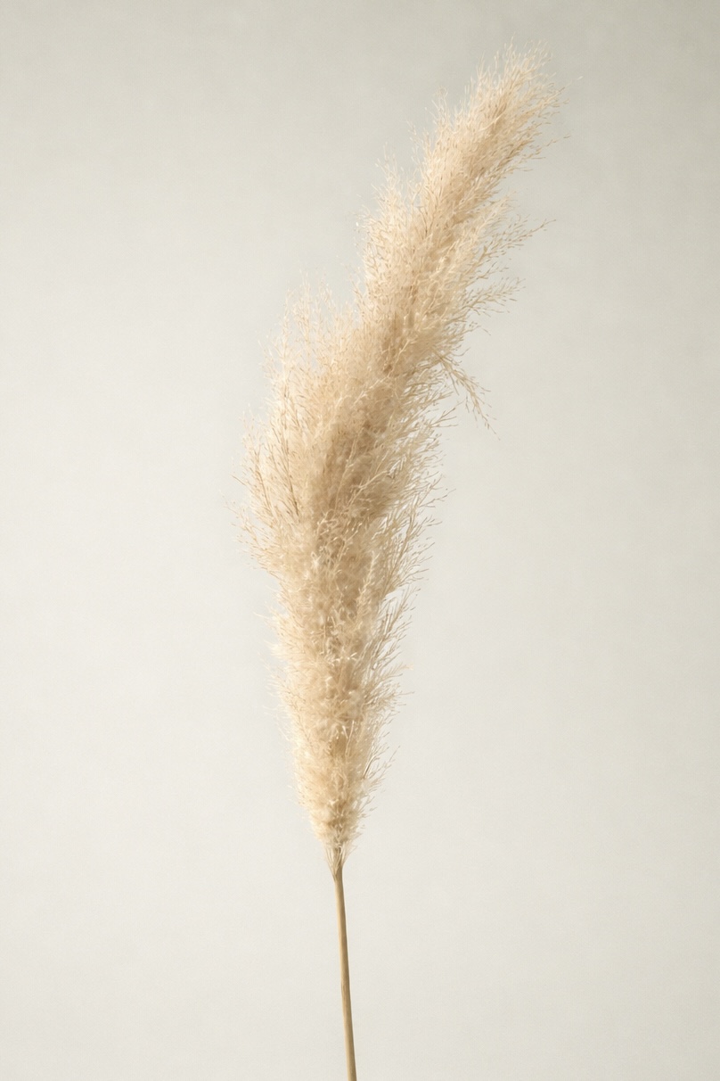 Drapé, herbes de pampa, fleurs séchées et champignons en bois sculpté.